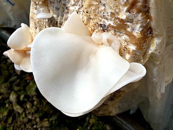 阿蘇ジオサイトである阿蘇黄土の上で生産したジオパーク認定商品の阿蘇きくらげ(白)