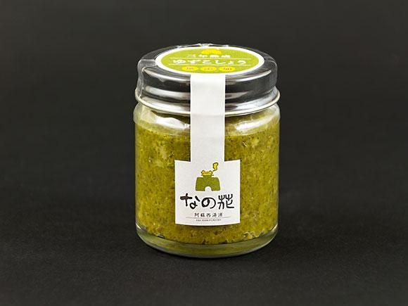 九州ではおなじみの調味料 柚こしょうは、香り豊かな柚子とピリッとした辛みの青唐辛子を練り合わせた調味料です。