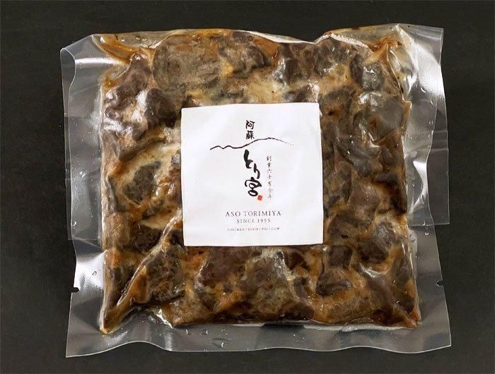 馬フワの煮込み:馬肉(熊本肥育)、ニンニク、鷹の爪、調味料(アミノ酸等)、(原材料の一部に大豆、小麦を含む)