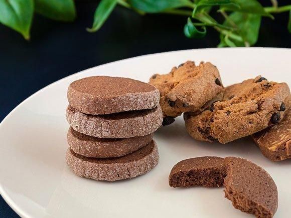 チョコクッキー:小麦粉、砂糖、発酵バター(乳成分を含む)、卵白(卵を含む)、ココア、ベーキングパウダー/天然香料