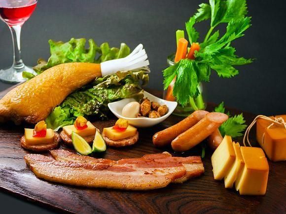 燻製料理は基本的にお酒に合うものですが、チキンとチーズでお子様にも喜ばれるセットになりました。ポークソーセージは薄く切って炙ると、ハイボールにピッタリ!どんなご家庭にも喜んでいただけるセットです。