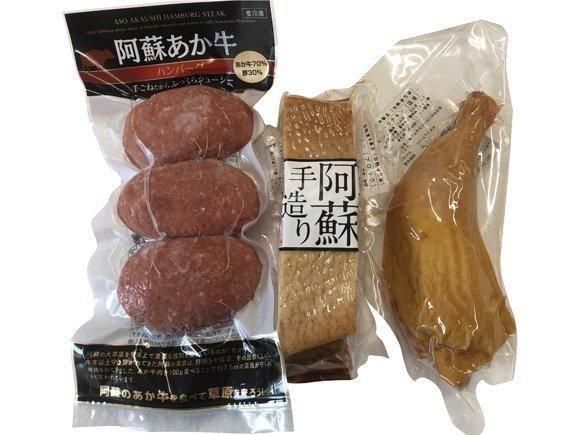 - ベーコン260g〜290g、スモークチキン240g〜280g、阿蘇あか牛ハンバーグ110g×3個