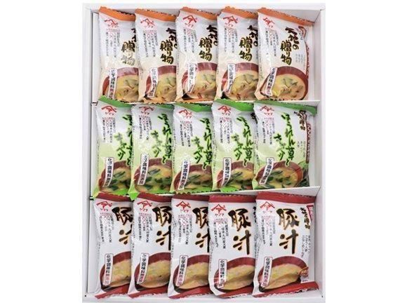 お湯を注ぐだけで出来上がる国産具材100%の即席みそ汁です。
