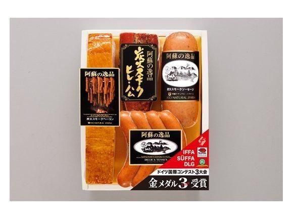 - ・炭火スモークベーコン150g、・炭火スモークヒレハム100g、・炭火スモークソーセージ200g、・スモークウィンナー4本入り120g