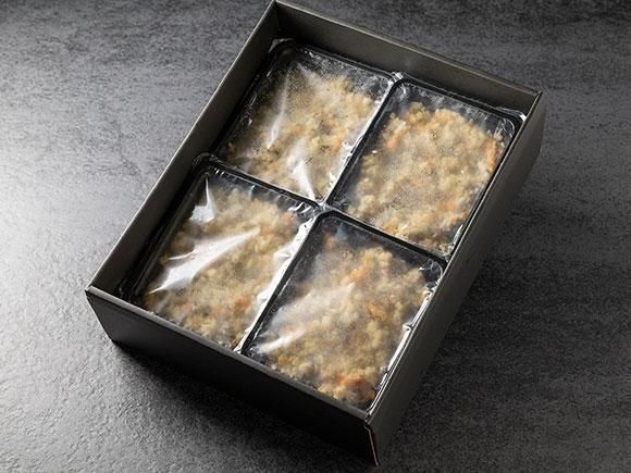 凍ったままの袋の端を1〜2cm開封し、電子レンジで加熱してください。